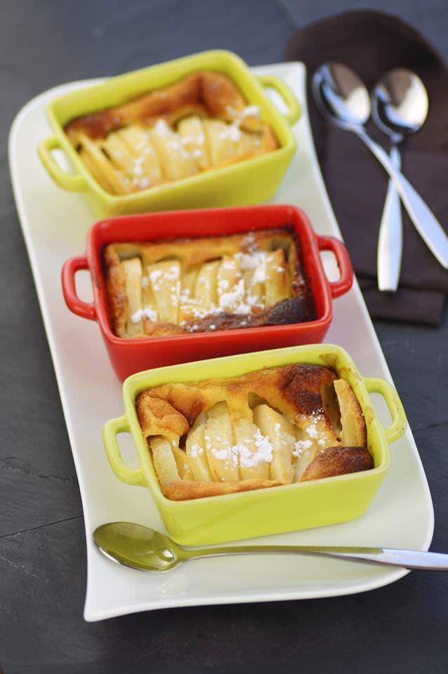 Couper les poires en tranches, disposer au fond d'un moule ou d'un plat à gratin beurré?