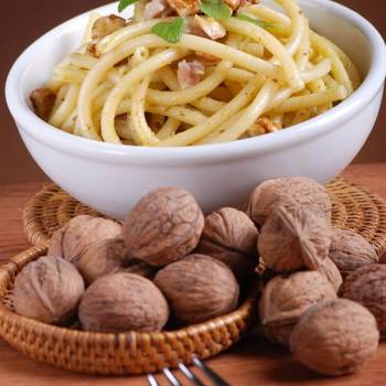 Servir dans des bols avec une pincée de persil, quelques noix concassées et un peu de fromage.