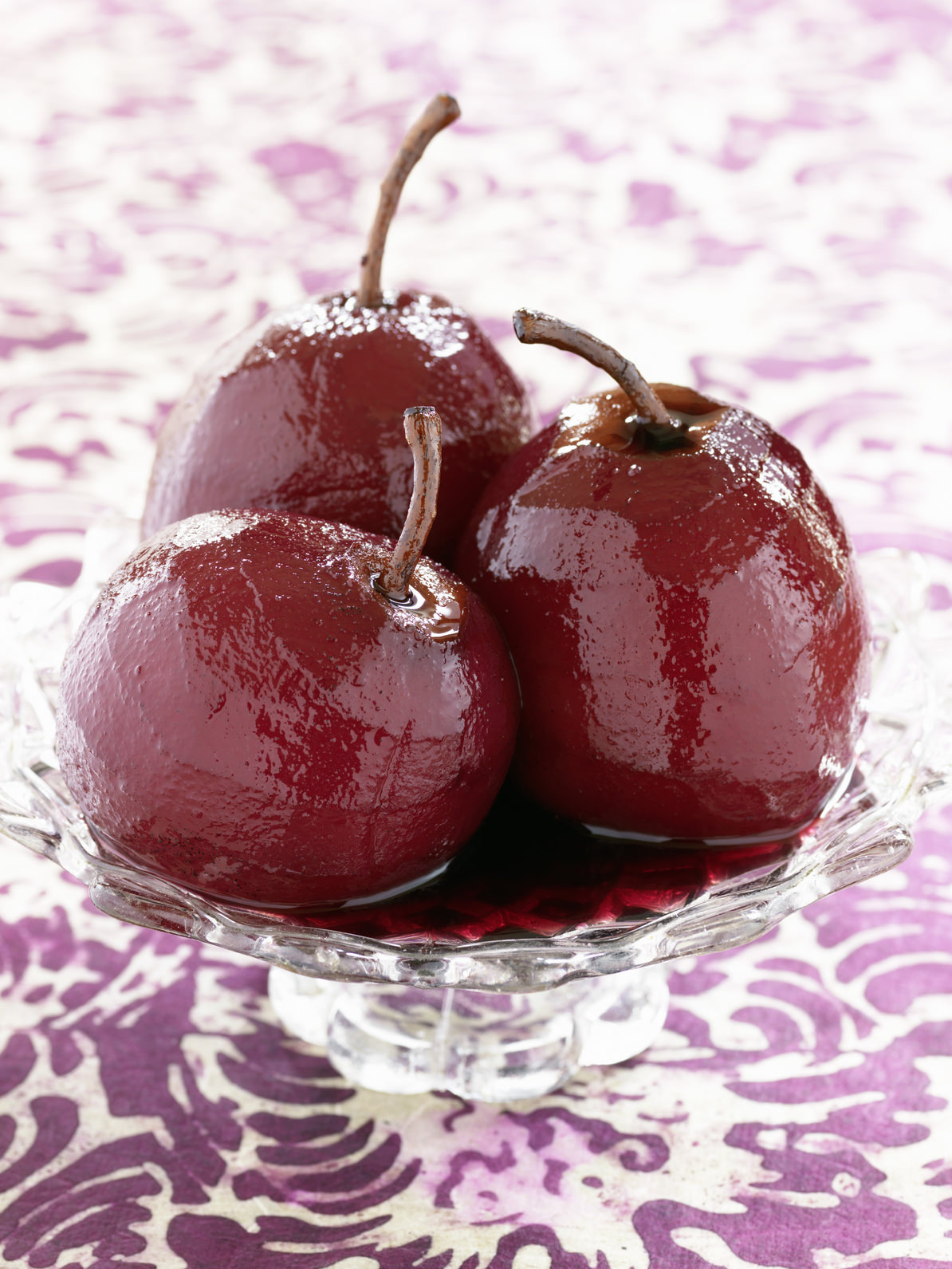 Faire bouillir le vin avec le safran, le miel, le zeste du citron et la gousse de vanille fendue. Plonger les poires entières dans le vin chaud, laisser cuire à feu doux 20 min.