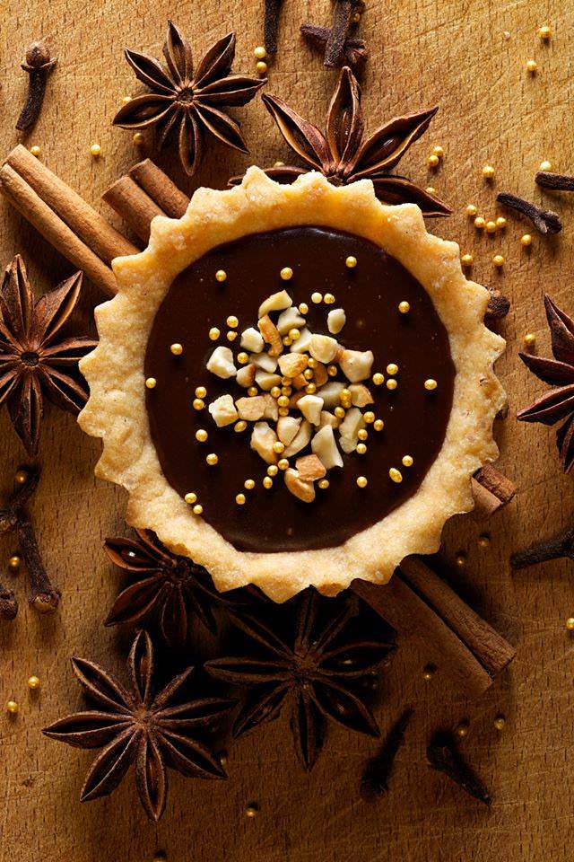Répartir le chocolat, parsemer de noix, mettre au frais.